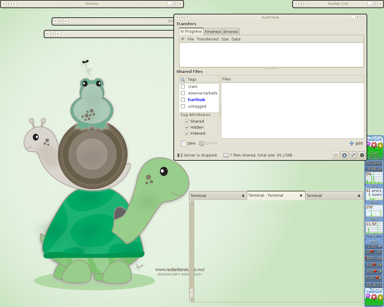 Some of my favorite programs from this time were GkrellM, Conky, MPD and XMMS. I used gaim (later renamed to pidgin) for messaging and hexchat for IRC.